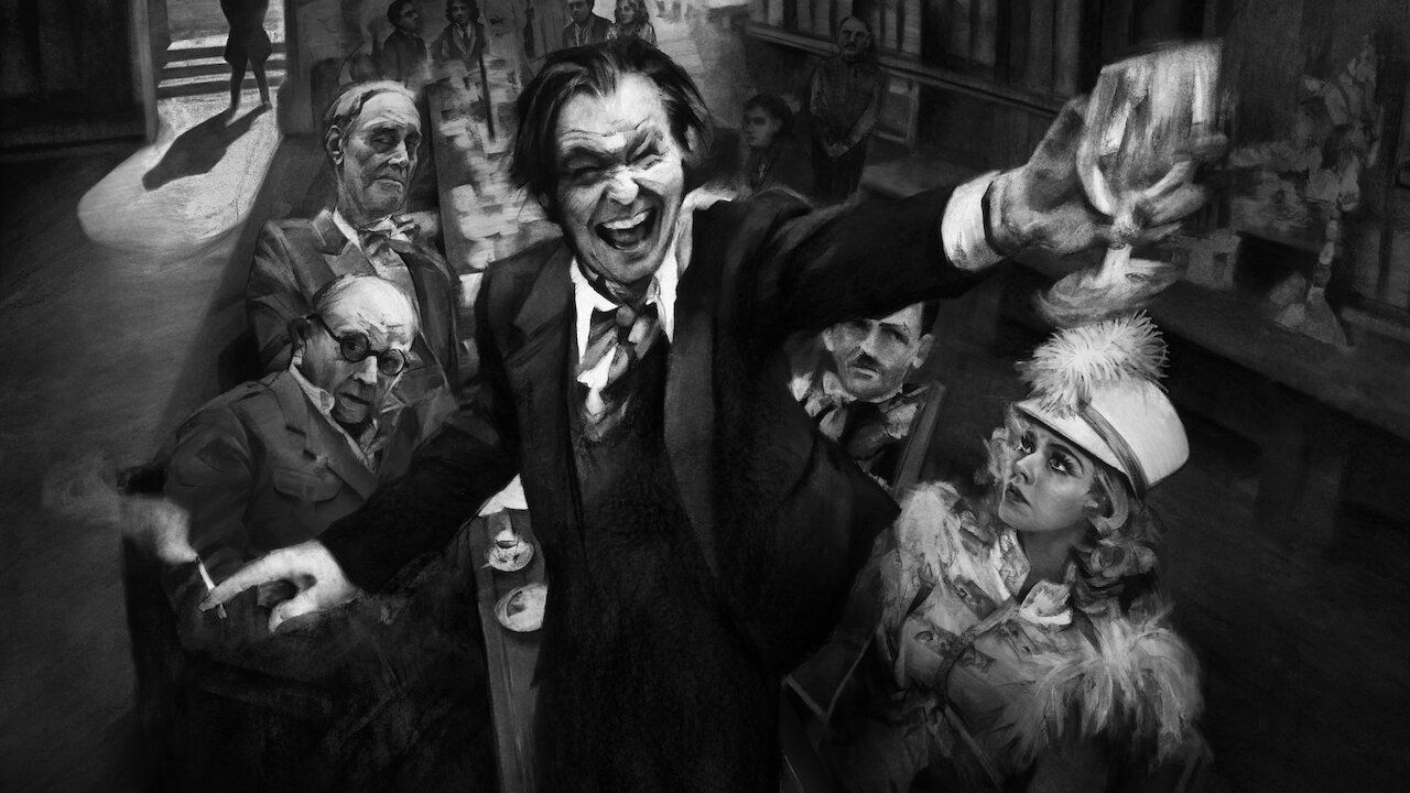 On va surtout suivre Mank, ce scénariste atypique. Vous le trouverez soit en train de rédiger un script pour le plus grand producteur de Hollywood, soit dans le bar du coin à se mettre la tête à l’envers. Voilà comment résumer le personnage en une phrase. Mais Mank est aussi ce qu’on peut appeler « un perturbateur« . Ou plus concrètement une grande gueule, un chieur, un clown.. Bref, il cause beaucoup, il est une réelle figure de l’impertinence dans ce petit milieu du Grand Ecran. Un personnage haut en couleur qui va être engagé par le grand Orson Wells, pour créer le script de sa vie.