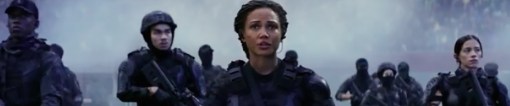 On voit tout de suite que l’armée du futur est américaine, parce qu’ils débarquent à l’Hollywoodienne. Ca atterrit en plein milieu du stade pendant une finale de Coupe du Monde de Football –décidément, les US ne respectent vraiment pas le soccer. Le seul moyen de gagner cette fameuse guerre est de transporter des soldats et civils de notre temps dans le futur. Des véritables alliés temporels pour affronter les aliens. Dan Forester va évidemment être de la partie !