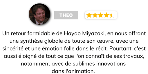 Hayao Miyazaki revient avec une œuvre riche en références, tout en abordant des thèmes actuels où des questions existentielles sont au cœur du récit. Encore un grand classique qui fera longtemps parler de lui.