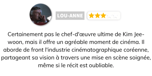 Car Ca tourne à Seoul est très dynamique, mais pourtant, on ne peut pas s’empêcher de s’ennuyer à certaines reprises. Ces personnages hauts en couleur en font des caisses tout le temps, que ce soit dans le jeu, les dialogues ou les situations plus loufoques les unes que les autres. C’est certes complètement assumé, et ça marche très bien quant à l’effet comique recherché. Mais, la surabondance de scènes inutiles ralentit progressivement et inlassablement le récit. Bien que pas inintéressantes en tant que telles, elles sont clairement de trop, à tel point que cela vient ternir en partie l’appréciation globale du film. Malgré une fin (presque) superbe, on se satisfait surtout d’arriver au bout de cette histoire qui n’en finissait pas. Bref, Ca Tourne à Séoul ou plutôt ça tourne en rond. Pas de panique, Kim Jee-Woon ne perd pas tout de sa superbe. Il aborde encore de belles thématiques liées notamment à l’énorme difficulté de création d’un film aujourd’hui, comme à l’époque. Un sujet important dans la sphère artistique, qu’il est toujours bon de rappeler, même s’il y a beaucoup de projets qui en parlent en ce moment au cinéma.. En définitive, malgré la diversité des idées créatives, on finit par rapidement se lasser avec une narration qui a du mal à imposer son propre rythme.