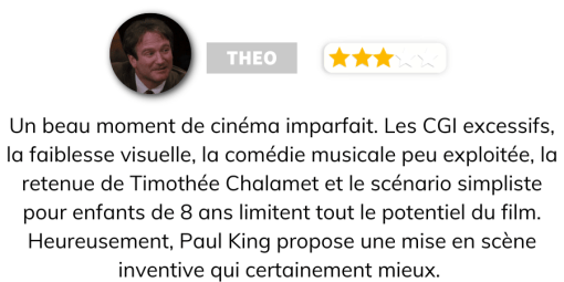 18 ans après la sortie du confort-movie parfait pour Noël, Charlie et la Chocolaterie, son successeur réalisé par le cinéaste Paul King propose un agréable moment visuel, qui s'accommode admirablement avec les fêtes de fin d'année, mais qui n'est pas sans reproche. Notre critique du film 'Wonka'.