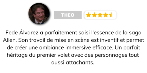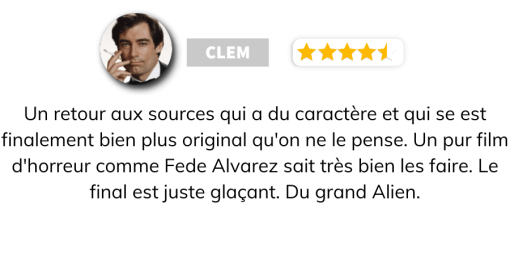 Fede Álvarez étend l’empire Alien avec un volet au niveau de tous les derniers opus. Un pas de côté sur une saga mythique qui fait du bien, rempli de références qui procurent autant de nostalgie que de plaisir coupable de retrouver cet univers xenomorphique. Des défauts mineurs, mais un finish explosif qui respecte la saga.