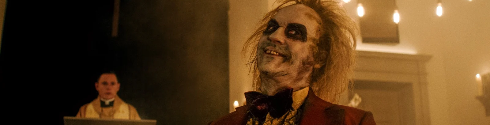 Tout ceci est réellement dommage, car dans le lot ressortent quelques bonnes idées. Des pistes qui auraient pu être intéressantes si elles avaient été menées à bien et qui auraient pu susciter de nouveaux enjeux, si elles ne nous avaient pas laissées sur une note de frustration. Alors oui, on pourrait juste contempler le terrain de jeu de Tim Burton et savourer le retour de l’enfant prodigue, qui semble vouloir seulement s’amuser. Comme en atteste la manière dont le personnage de Charles Deetz est traité, ou bien encore les nombreuses scènes musicales (un peu forcées) qui témoignent de son véritable désir de renouer avec son film d’origine. On pourrait simplement profiter des actions pittoresques du personnage principal. Mais il est difficile d’apprécier réellement ce manque de consistance qui finit par entacher le mythe. Après ce second volet, qu’est-ce qui reste du personnage de Beetlejuice en fin de compte ? Dans le premier opus, on nous présentait un arlequin qui symbolisait la perversité et le vice, et dont la triple prononciation était un signe de malheur et de dégoût. 36 ans plus tard, il ne semble être que son ombre, dénué de toute malice, se révélant être bien plus stupide que dangereux. Délaissé par son intrigue survolée sur ses origines et ne représentant plus la menace que le premier long-métrage laissait supposer, il se retrouve finalement en retrait de son propre film. C’est comme si Tim Burton ne comprenait pas lui-même son anti-héros. Pire, il semble s’en être complètement désintéressé au profit de tous ceux qui l’entourent.