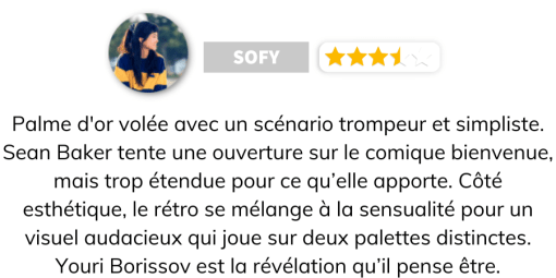Là où la première partie expose ses protagonistes, les développe et dresse son contexte social, la deuxième se transforme en pure comédie Ritchienne dans la veine d’un Snatch ou Arnaques Crimes et Botanique. Le long-métrage y enchaîne alors les passages tout bonnement hilarants, faisant à nouveau ressortir le talent de son interprète principal, mais également des irrésistibles et très attachants seconds rôles. En émanant des séquences ébouriffantes et déjà bien marquantes dans le genre comique, où nos personnages se retrouvent dans des situations bien alambiquées. Le film gagne en point dans cette vivace deuxième partie qui explose les compteurs de rire. Mais Sean Baker manque par moment à son devoir. Difficile de dire si le réalisateur de Red Rocket s’intéresse vraiment aux milieux sociaux précaires qu’il dépeint, ou s’il se sert de ce décor pour assouvir son désir pervers, désamorcé par de belles séquences dramatiques dans le but de rendre son œuvre plus intello et apte à concourir dans plusieurs festivals. Une question naturelle qui se pose lors de la jolie dernière séquence du film, mais en décalage avec le reste, comme si le réalisateur s’était senti contraint de finir sur une note plus grave. Néanmoins, Sean Baker réalise ici son Pretty Woman des années 2020, parfois tout en finesse comme parfois avec ses gros sabots. Le moment de cinéma est agréable, on décroche de nombreux rires, mais peut-on réellement voir en lui une Palme d’or ? La réponse est clairement non. Tout au plus, le long-métrage aurait dû remporter le prix de l’interprétation féminine pour la fascinante prestation de Mikey Madison, mais certainement pas le prix prestigieux qui suit Anatomie d’une chute, sortie l’année dernière.