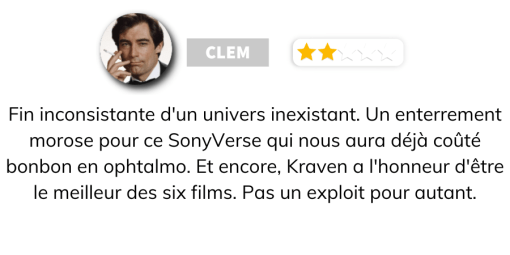 Kraven n’est rien. Ni extrêmement mauvais, et évidemment ni bon. Film insipide par excellence. Film conçu par des êtres humains plus froid que Chatgpt. C’est triste, on commence presque à se dire que l’IA pourrait faire mieux.