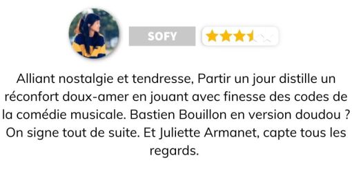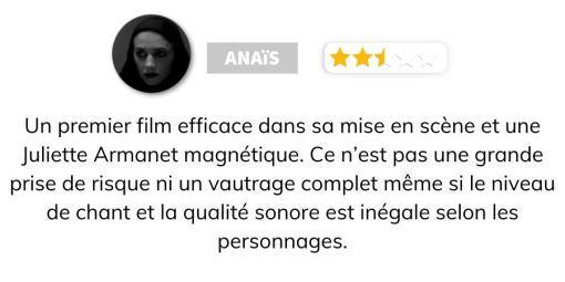 Une comédie romantique rétro-nostalgique pleine de douceur, portée par la maîtrise de sa mise en scène (séquences musicals) et le charisme magnétique de Juliette Armanet, malgré quelques séquences de chant gênante (on t’aime Bastien, mais pas de The Voice pour toi).