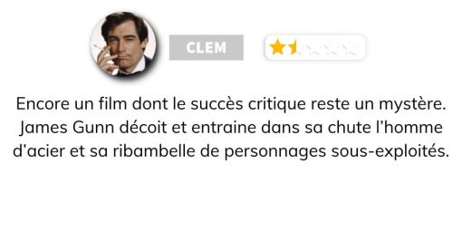 Au final, ce film Superman (2025) apparaît comme un mélange inégal : d’un côté, l’envie sincère de renouer avec une figure emblématique et un ton pop assumée ; de l’autre, une écriture en dilettante, sans épaisseur ni rigueur narrative. Malheureusement, la sensation dominante reste celle d’une promesse entachée par une exécution superficielle. On ressort avec le sentiment que James Gunn s’est peut-être attaqué à un chantier trop grand pour lui seul, et que le DCU n’est toujours pas sur de bons rails..