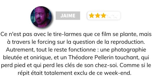 Nino est donc sans contexte un jeune garçon aimé par ceux qui l’entourent. Et nous apprendrons à faire la connaissance des acteurs et actrices de sa vie à travers une lente traversée de la capitale. Nino apaise les cœurs, Nino fait du bien, Nino questionne, Nino a trop tendance à regarder en arrière, Nino est fragile, mais fort. Ce portrait d’une jeunesse frappe juste, et la lenteur de son récit aide à mieux s’imprégner de l’ambiance mélancolique que propose ce long-métrage. On peut lui reprocher quelques longueurs, mais le coup de cœur est amplement justifié. Surtout lorsque l’on découvre à quel point Théodore Pellerin réussit à développer une alchimie avec l’intégralité de ces partenaires de jeu. Tout simplement magique de simplicité et de spontanéité. De William Lebghil, en passant par le passage éclair et rassurant de Mathieu Amalric et en terminant en apothéose avec la tendresse de Salomé Dewaels. Toutes les interactions avec l’entourage sain de Nino sont bouleversantes de justesse dans tous les sens du terme. Nino, c’est bien le long-métrage à aller voir en salles en ce moment ! Jamais Fataliste, jamais misérabiliste, jamais dans le tire-larmes sombre qui donne envie de passer l’arme à gauche. Nino est bien un film lumineux, apaisant, et rassurant face aux épreuves de la vie.
