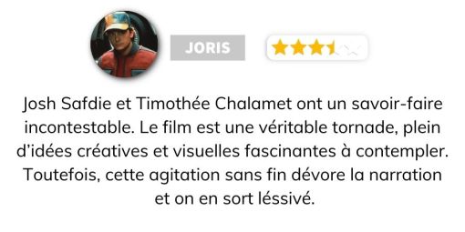 Comme son frère, Josh Safdie rate son biopic sportif. Heureusement pour lui, il a un meilleur acteur, ce qui permettra malgré tout de se souvenir de son film.. Une sorte d’illusion dans sa filmographie qui, au moins, lui rendra bien service.