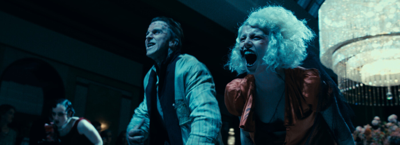 Plus l’on s’enfonce dans cette course-poursuite bonnie and clydienne, plus The Bride est un film qui foisonne de directions et d’idées. Le long-métrage hybride possède des codes multiples : une esthétique punk-rock, une narration semi-horrifique et semi-comique, des codes du film de gangsters et des emprunts aux musicals. Entre les élans tragiques et musicaux de Joker Folie à deux, la cavale romantico-criminelle de Bonnie and Clyde, et l’exubérance visuelle de Babylon, Maggie Gyllenhaal accumule les références et ne manque ni d’ambition, ni de créativité. Elle assume ce virage risqué malgré les difficultés que le projet a déjà rencontrées. En effet, The Bride a connu quelques reports, et a navigué de studio en studio avant d’être finalement signé chez Warner Bros. Car si la cinéaste était habituée aux plus petites productions, ce n’est pas le cas de The Bride où des limites sont franchies, et c’est ce qui renforce l’identité visuelle où l’absurde côtoie le punk. La mise en scène, complète et vivante, fonctionne comme un personnage à part entière.